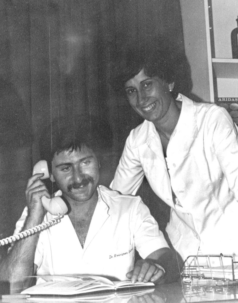 Dr. Rodríguez — Todo empezó antes de casarnos. En mayo de 1976 montamos la consulta y, en septiembre, nos casamos. . Tuvimos un apoyo fundamental: la madre de Eulàlia quería ayudarnos a comprar un piso para vivir. Pero nosotros decidimos comprarlo para trabajar. En aquel momento aún no éramos oftalmólogos y la placa solo podía decir “Medicina”, aunque tras más de dos años trabajando sabíamos ya mucha más oftalmología que medicina general.