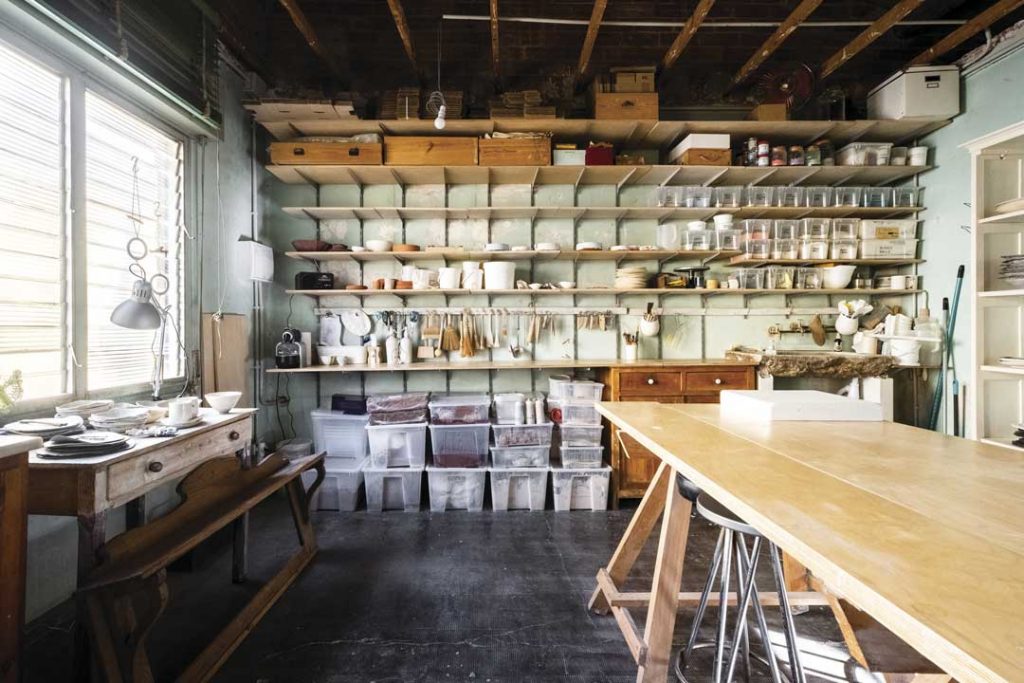 En el pis de dalt del restaurant Mecànic Pizza, tocant la plaça Pep Ventura, on antigament se situava el despatx de la desapareguda fàbrica de baquelita – un plàstic sintètic que es feia servir per a les carcasses de ràdios i telèfons -, un primer pis banyat amb una llum natural ideal per a la creació de les seves peces de ceràmica, Arianna Russo ha traslladat recentment el seu taller. “L’he volgut deixar tal com el vaig trobar”, assegura l’arquitecta, restauradora, artista polifacètica d’origen italià i adopció catalana. Les vigues de fusta del sostre, el sol de formigó, les parets pintades en tons blaus i verds, descolorits pel pas del temps, l’estètica dels anys setanta enalteix les peces de gres i porcellana blanques, creacions d’una fràgil bellesa amb ànima, l’ànima de qui crea amb inquieta passió, en comunicació amb la matèria, deixant que aquesta s’expressi lluirement a les seves mans. “M’interessa portar la matèria al límit, treballar amb diferents materials orgànics i observar les noves formes resultants”, explica en ensenyar-nos les diferents propostes tant de venda al públic com d’exposició. Una feina inspirada en diferents moments de la seva trajectòria professional i personal, en un constant renàixer del seu art.
