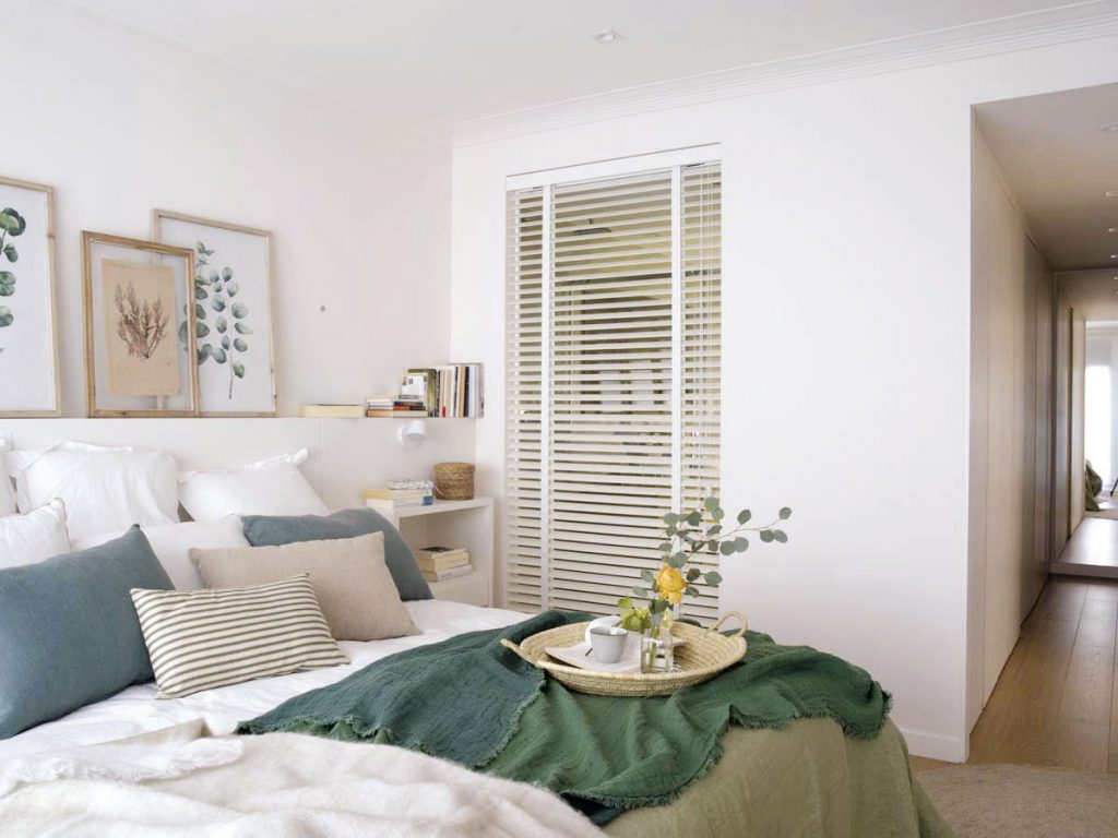 També cal evitar la temptació de penjar quadres petits entre les portes dels passadissos, ja que pot crear una sensació de desordre i desequilibri. Com a alternativa, a mi m’agrada triar peces més grans que s’ajustin millor a l’espai. Al igual que en el dormitori, on podem centrar una peça de gran format damunt del capçal del llit o, de no tenir-la, posarem una més petita descentrada per a agregar interès visual a l’habitació.