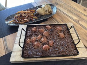 Els segons plats igualment saborosos van consistir en una sèpia a la brasa, feta al punt i acompanyada de patates fregides casolanes, i un arròs de botifarra gustós, fent honor a la tradició culinària local.