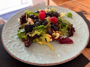 Els seitons amb torradetes ens han obert l’apetit de manera perfecta per al que va venir a continuació. L’amanida de fruits vermells i secs, molt refrescant, i la crema de carabassó i poma, suau i amb un toc dolç final molt original.