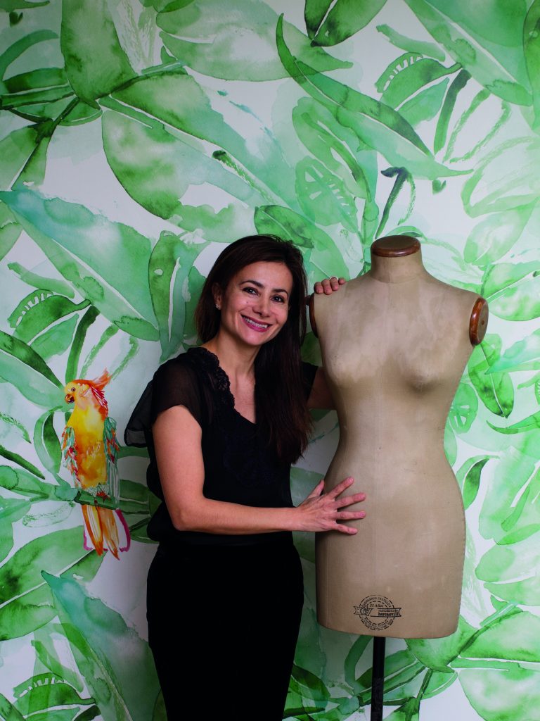 Cuando le propusimos a Esmeralda, o Sam para los amigos, posar para nuestra sección deco selfies, no dudó en mostrarnos el mural titulado find parrots, de la colección de papeles de pared pintados que la ilustradora Laura Costafreda ha firmado para Coordonné. “Es alegre, muy caribeño”, reconoce esta colombiana afincada en España desde hace más de dos décadas, que hace poco rescató el maniquí que su madre le regaló el día de su graduación y tenía medio olvidado en la casa materna, en Colombia, para facturarlo en una maleta. Una historia romántica, como también lo son su vestidos de ceremonia, para novias e invitadas.