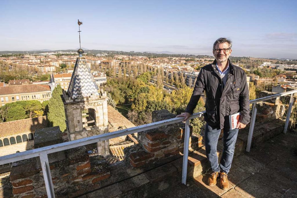 La cultura és la debilitat del periodista, recentment reconvertit en polític, i el teatre, tot i que ja ha fet els seus primers passos, el seu repte pendent. “Hi ha gent que va molt sovint al restaurant. Jo hi vaig de tant en tant… perquè m’ho gastaria tot veient espectacles en directe”, assegura des del cinquè pis de l’església del Monestir, on es troben les campanes litúrgiques, a uns quaranta metres d’alçada des del terra, de sobte et trobes al cel, gaudint d’una panoràmica impressionant. On se li van els ulls a Josep Maria? Sense cap mena de dubte, escullen el Teatre-Auditori: “Sóc un enamorat, un malalt, viciós”, recull adjectius a l’alçada de la seva passió.