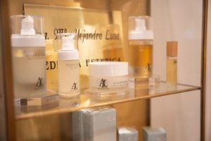 Para dar continuidad a los tratamientos en cabina, y tras su experiencia como usuaria insatisfecha de la cosmética convencional, la doctora ha volcado también su conocimiento en farmacología en el desarrollo de su propia línea cosmética, con seis productos esenciales, pensados para diferentes tipologías cutáneas.