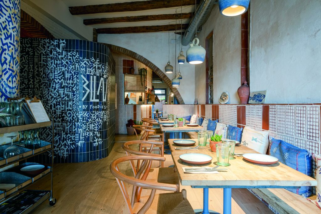 És el color del mediterrani, el mar que connecta Europa, amb l’Àfrica i l’Àsia, testimoni de cultures riques en gastronomia com la grega, la turca, la italiana, l’espanyola i la catalana, el blau denota connotacions de fusió, i també d’amabilitat, confiança i un punt de fantasia, valors que defineixen el restaurant que porta aquest nom i que ha calat des dels seus recents inicis en el públic santcugatenc. Tot i que ha estat un descobriment parcial, es tracta de la segona proposta de Julen Blanco, l’alma mater, juntament amb Fàtima Ouhida, del consolidat Foodies de Valldoreix, un descobreix el Blau a mesura que se’l va fent seu, com si la seva carta escoltés els desitjos de cadascun dels seus clients, que han recolzat la seva idea de gastronomia de fusió amb entusiasme. La creativitat, sense límits de Fàtima, s’ha unit a la il·lusió de Julen, ambdós apassionats de la restauració i de la decoració, per donar vida a una fórmula que combina producte de la millor qualitat a un preu molt competitiu en un espai que també fusiona amb encert diferents estils decoratius, donant com a resultat un eclecticisme tranquil i molt mediterrani. Molt blau.