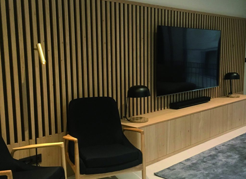 Tampoc recomano penjar-la en una paret, sense posar-hi res al voltant. La tele no pot ser la protagonista d’un llenç blanc, sino que ha d’estar acompanyada d’altres elements, de manera que es pugui camuflar sota un prestatge o d’amunt d’un laminatge de fusta, per exemple, com il·lustren les diferents feines que he portat a terme per alguns clients i acompanyen aquest text.