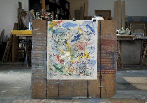 Repassant les obres, majoritariament sense acabar, cada vegada que alabo un dels seus quadres, el Sergi em diu que “està sense acabar”, em crida l’atenció el color blau, el de la seva “ciutat celeste”. I automàticament t’arriba aquest “alé, el perfum de la joia de viure”, com ell descriu amb emoció.