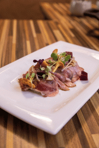 Després de passar per l’escola Hofmann, on es va formar tècnicament com a cuiner, Pau Pérez va agafar experiència en diferents establiments, molts d’ells estrellats. Casualitat o no, el talent d’aquest jove xef, que s’acaba de llançar al món de l’emprenedoria obrint el seu propi restaurant, va ser requerit a les cuines de Coure, Moments – de Carme Ruscadella i el seu fill Raúl Balam -, Xerta, i Wall 57. Tots ells van exercir sense dubte una influència a l’hora de crear la seva proposta al recentment inaugurat Aflamas, amb una cuina d’autor basada en el producte. “La majoria dels restaurants on vaig aprendre eren uns boixos del producte, i aquest coneixement m’ha permès triar entre els millors proveïdors”, assegura Pau, que també és un entès en oli, “aquí, al contrari del que es pensa, falta coneixement d’una de les essències de la nostra cuina”. L’explosió de sabors amb la que el xef sorprèn en cada plat compost d’elements amb sentit, prenen tot el protagonisme en un local marcat per una decoració sòbria, amb diferents sales privades, d’una capacitat fins a catorze comensals, servits amb la professionalitat exigida, a l’alçada de la qualitat d’una carta formada per propostes clàssiques que troben un contrapès en altres fórmules més actuals, elaborades amb superfoods, per exemple, més lleugeres. El menú executiu, de 29€, se serveix entre setmana, de dimarts a divendres. Una bona opció per conèixer de primera mà el món creatiu d’aquest xef que aviat farà parlar.
