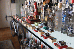La colección de botellas de vodka y cajitas de música, dos de sus grandes aficiones junto con la bicicleta, “esta me aporta salud y diversión”.