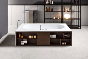 Muebles, lavabos, bañeras, duchas, griferías, mamparas, cerámicas, papeles pintados, iluminación. Aliaga combina todos los elementos para diseñar el baño pensado.