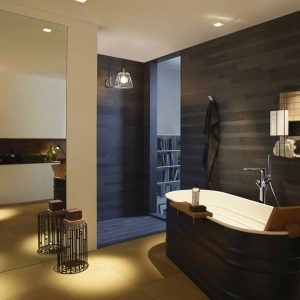 Muebles, lavabos, bañeras, duchas, griferías, mamparas, cerámicas, papeles pintados, iluminación. Aliaga combina todos los elementos para diseñar el baño pensado.