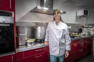 Poco se iba a imaginar esta licenciada en farmacia que después de acabar la carrera y trabajar durante siete años en el departamento de marketing de una multinacional del sector, su vida daría un giro tan radical. Es lo que tiene ser madre de familia numerosa. “Al nacer el tercero de mis cinco hijos, decidí dejarlo, pero confieso que el segundo mes ya no podía más y empecé a hacer pasteles de cumpleaños, que vendía a las mamás del cole”, recuerda al relatar los inicios de la actual empresa que dirige. Tras los pasteles, llegaron otros encargos, meriendas, repostería, desayunos, aperitivos, y menús completos, y para no colapsar la cocina de su casa, montó y profesionalizó el anexo que actualmente supone el centro de operaciones de su consolidada empresa de catering, capaz de dar servicio a hasta quinientos comensales diarios. Sus principales clientes son parvularios del Vallés y Barcelonés, atraídos por el tipo de cocina, casera e innovadora, además del asesoramiento que también ofrece a los padres, a quienes da formación complementaria y ayuda a solventar dudas y pro- blemas acerca de alergias e intolerancias alimentarias.