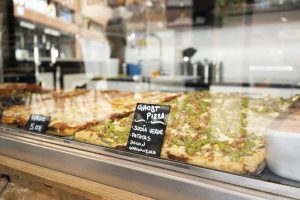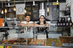 Una trattoria es el típico restaurante italiano que se caracteriza por ofrecer comida casera en un ambiente informal y acogedor. Capote’s Pizza elabora platos tradicionales, entre los que destaca la pizza al corte, con ingredientes frescos y de alta calidad. Los encargados de crear una experiencia auténtica italiana son Roberto, un chef con más de veinte años amasando sus propias recetas, y Daniela, a cargo de la sala y la gestión del negocio, una pareja encantadora con una única pretensión: que sus clientes disfruten de su propuesta sencilla a la vez que deliciosa. Entre las variedades de pizza destacan la clásica Margherita o roja, con tomate, mozzarella, albahaca fresca, aceite de oliva y sal, y el corte gourmet, con porchetta y trufa, por ejemplo, aunque la oferta es tan variada como colorista, como se puede observar nada más cruzar el umbral del local y acercarse a su mostrador donde se exponen todas ellas, listas para llevar o degustar en una de las mesas dispuestas en el interior o en la terraza.