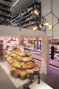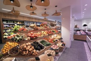 Hecho a medida, la sección premium de frutas y verduras, presentadas en unos cestos de fibra natural, invitan a una experiencia de compra global, que se complementa con las amplias vitrinas de carnes, quesos y embutidos, los frescos son su punto fuerte, una completa selección de productos gourmet, vinos y licores, y los productos de limpieza, estos últimos situados en el piso de arriba.