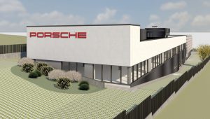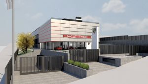 Imágenes renderizadas del futuro Centro Porsche Barcelona en Sant Cugat del Vallès.