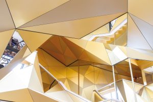 El resultat ha servit per crear un model corporatiu, amb el blanc, el daurat i el negre, com a colors bàsics, que ha servit per adaptar la resta de botigues de la marca. Les incrustacions de pa d’or al vidre de les vitrines d’exposició, “on es nota l’enginy i gràcia inqüestionable de Salietti”, la gelosia daurada per separar espais, el granit de la ja mítica barra de bar i taulells, i l’espectacular triangulació de làmines de planxa d’alumini del sostre de la planta baixa, no deixen indiferent als seus selectes clients, especialment als locals que poden gaudir d’una experiència de compra que inclou cultura, tradició, i història. El luxe està servit!