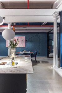 L’exclusivitat és un concepte ampli que permet diferenciar una proposta d’altres. En el cas de la restauració, el nou establiment d’Iker Erazkin, un xef que crea distàncies en el món de la gastronomia barcelonina, engloba un concepte únic, més enllà dels fogons. Menjar directament sobre la taula és potser la característica més trencadora del restaurant Uma. “Necessitàvem un material net i d’una textura especial, com la que ens oferia Neolith”, explica la directora creativa de l’estudi d’arquitectes Sánchez Guisado, Silvia Sanchez. Atreta per les prestacions i l’estètica de la pedra sinteritzada de la marca, a més de valorar la bona disponibilitat de l’empresa a l’hora de crear un producte fet a mida, l’arquitecta va optar pel model Zaha, una reinterpretació de la pedra grisa iraniana, amb venes blanques, que deu el seu nom a la cèlebre arquitecta. El color del material aconsegueix tanmateix crear l’efecte de lluminositat adient per l’entorn.