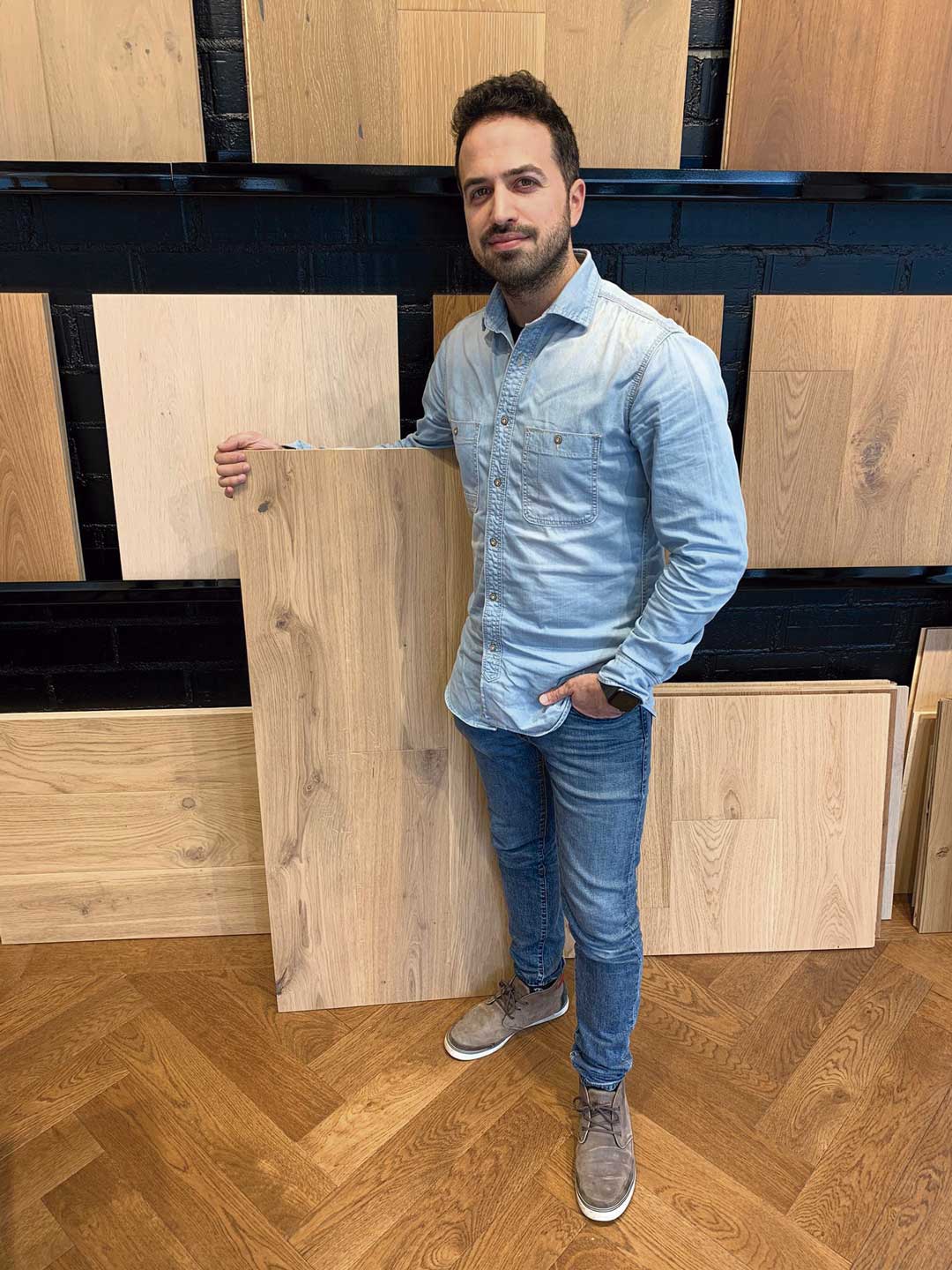 Es podria dir que Jordi Domínguez és un self made man, un professional que s’ha format a base d’experiència, d’envoltar-se de la gent adient i de cops de crisis, perquè ja se sap que les recessions afecten de manera sistèmica a les empreses relacionades amb la construcció i aquest és el sector on sempre s’ha mogut. És per aquesta raó que en plena pandèmia ha decidit iniciar una nova etapa en la seva trajectòria inaugurant Wynwood, el seu primer showroom de parquets de qualitat. “Després de fer un petit estudi de mercat, vaig veure clar que aquesta era una bona plaça pel producte i servei que oferim als nostres clients”, explica al nou espai, càlid i acollidor, ple de mostres de diferents tipus de fusta en plena tendència, com el terra d’espiga que ha escollit pel nou establiment. Tot i que també treballa amb paviments sintètics, és amb aquest material noble amb el qual s’ha especialitzat, la base de diferenciació davant d’una competència més enfocada a la varietat d’oferta i preu: “Aquí despatxo als clients, d’un a un, donant una atenció totalment personalitzada”, comenta, content de poder posar a l’abast del client final la seva expertesa, com acostuma a fer amb els professionals, com arquitectes i interioristes, amb qui continua col·laborant. Apassionat de la fusta, “m’agrada perquè és autèntica, natural, és una qüestió de sensació”, no li falten raons per aconsellar la seva instal·lació, “al contrari del que es pot arribar a pensar, pràcticament necessita el mateix manteniment que un sintètic”, i defensa els petits canvis que pateix al llarg el temps, com “part del seu valor”.