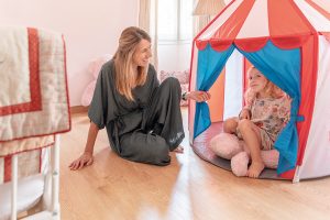 En su barrio de toda la vida, descubrimos el hogar de Samanta Rabasa. Joven, emprendedora y madre de dos pequeñajos adorables, concilia su trabajo con la vida familiar, en perfecta armonía. Risueña y elegante por naturaleza, en su casa se respira el espíritu que ha logrado plasmar en su marca de ropa, La Croixé. Un sueño hecho realidad, que empezó en solitario en 2013 cuando diseñaba y vendía en su piso los vestidos de fiesta que ella hubiese querido llevar como invitada. Dos años más tarde, esta barcelonesa diseñadora de vocación, conoció a su socia Noemí Martín, con quien unió fuerzas para relanzar la marca, logrando ambas un éxito absoluto entre las jóvenes, y afianzándose en el mercado como primera marca. Entusiasta y cercana, no tiene intención de parar. Tiene claro que el futuro es la venta online, su otro gran canal, que ha disparado las ventas en muy poco tiempo. Y, aunque La Croixé ya ha logrado traspasar fronteras en algunas tiendas de Europa, Chile o México, el nuevo sueño de Samanta, ahora, es llegar a enamorar al mundo.