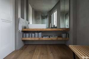La escalera escultórica que une los dos pisos de este ático con terraza perimetral situada en el barrio de San Gervasio es solo uno de los elementos arquitectónicos que marcó el proyecto global de reforma realizado por Carles Ferruz, de Ferruz Studio. La falta de columnas, la gran claraboya y el lucernario impidieron crear un espacio común, que uniese el salón, parcialmente abierto, al comedor y a la cocina. “No obstante, la reforma tuvo una fuerte implicación arquitectónica, dando protagonismo a las formas y ceración de nuevos espacios”, asegura Carles. Por necesidad de la familia formada por una pareja con dios hijos, el dormitorio principal, diseñado totalmente a medida, conecta con un despacho mediante una puerta corredera doble, que al abrirse deja ver una pieza histórica que Hans J. Wegner diseñó en los años 70. El resto de elementos decorativos, con presencia de pocos materiales, pero de la gran calidad que habitualmente firma Ferruz, componen un escenario minimalista que realza las pinturas en gran formato que embellecen las paredes, que proceden del propio estudio de la propietaria. Las texturas, también de una sugerente sensualidad, contrastan con la naturalidad que caracteriza el diseño de paisajismo de la terraza, protagonizado por árboles frutales para el consumo propio, en una especie de jardín urbano que hace las delicias de los invitados que se alojan en el torreón reconvertido.