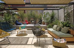 El Hotel Velvet, que en breve se inaugurará en el corazón del Eixample, recrea el glamour de la edad de oro del cine norteamericano. Para destilar esa estética cinéfila vintage, Eva Martínez ha elegido la colección Golden Age de Güell Lamadrid, concretamente su gama Audrey (en honor a Audrey Hepburn) para las butacas bajas que decoran el comedor. También los tonos azulados de los tres motivos que combinan a la perfección en los sofás de la terraza retrotraen a esos dorados años 50 del celuloide estadounidense.