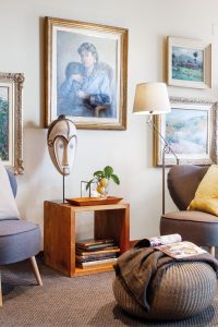 A Silvia le apasiona el diseño y el interiorismo, una afición que, podría decirse, ha heredado de su abuelo, su mayor referente. “Él era un artista”, explica, “hoy mi casa está repleta de obras suyas”. Algunos cuadros paisajísticos que decoran el salón situado en la primera planta, presidido por una gran chimenea de caoba a la que tiene especial apego, son algunas de las piezas con mayor carga sentimental, procedentes de este legado. Estas, de estilo más clásico, contrastan con singulares hallazgos en diferentes brocanters del Empordà, entre otros, donde la diseñadora disfruta rebuscando junto a su hijo: “Además de procurar estar al día de las nuevas tendencias, me encanta encontrar ese objeto que pueda darle un toque único a cualquier rincón de mi casa”.