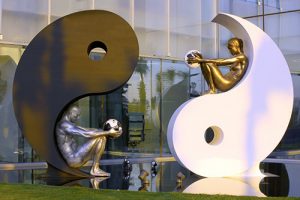 La escultura Ying Yang se ha convertido en la insignia de la clínica del doctor Iván Mañero en Sant Cugat.