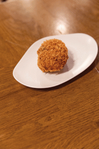 La famosa croqueta de pollastre a la catalana, amb passes I pinyons.