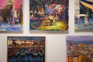 Les Menines, les terrasses i cafès són molt presents a l’obra de traç colorista inspirada en els clàssics de Begoña de Erausquin.