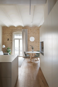 Proyecto Ruzafa _ Este proyecto integral se desarrolla en una vivienda de dimensiones ajustadas dentro de un edificio antiguo en el barrio valenciano de Ruzafa. El reto fue aprovechar al máximo el espacio respetando el pasado de un edificio histórico, sin perder el valor y sensaciones que aportan su notable altura y los techos abovedados. En el desarrollo del proyecto ejecutivo, se recuperaron las baldosas hidráulicas originales que contrastan con los tonos neutros de las zonas de día y noche, persiguiendo una continuidad en las distintas estancias, en las que se integraron zonas de almacenaje para lograr una mayor sensación de espacio y orden cartesiano en esta vivienda que NT ha desarrollado hasta el más mínimo detalle con el fin de unificar un criterio estético: desde el concepto inicial, hasta el mobiliario, la iluminación y los complementos. /