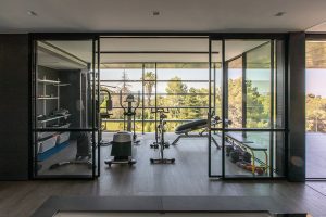 Cualquier arquitecto debería conocer el estilo de vida de la familia para quien va a diseñar un proyecto de vivienda. Recoger las necesidades del espacio es la clave del éxito para dotarlo de funcionalidad. En el caso de JO y AS, el deporte es parte fundamental de su rutina diaria y el gimnasio ocupa un lugar destacado en la casa unifamiliar que acaban de estrenar en Bellaterra. Cabe decir que la sala de máquinas donde realizan sus tablas personales goza de unas vistas extraordinarias a la naturaleza del entorno de esta ciudad jardín novecentista, y forma parte de un circuito que incluye sauna y ducha terapéutica. Una saludable filosofía de vida para mantenerse en forma que es tendencia. La magnitud e importancia del espacio para poder entrenar sin moverse de casa es otra cuestión… JM.