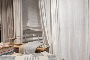 A Ombra hi ha una gran exposició en teles, tant per catifes, com per entapissar i elaborar tota mena de tendals i cortines: des de les més clàssiques, de lli, cotó, o altres materials naturals, fins a les venecianes de fusta i estors, entre altres.