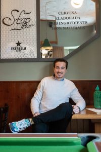 Entre l’enrenou dels cops de tasses, gent entrant i sortint per la porta, prenc un cafè amb l’Adrià Ponsico en el local que compta amb una de les terrasses més mítiques de la ciutat. Es tracta del Bar Stop, on, juntament amb el Russinyol, aquest jove emprenedor intenta mantenir l’essència dels bars de tota la vida. Recordem l’època de quan ell era un nen i jo estava darrere el taulell, de les seves inquietuds i de com el seu pare ha estat un referent important en la seva vida.