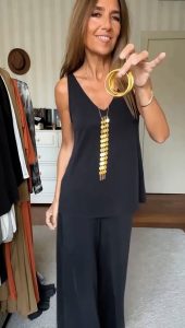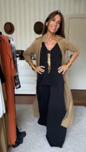 “Esta pregunta siempre es la más difícil”, responde Reyes con una sonrisa cuando le pedimos que defina su profesión. “Mi trabajo diario consiste en crear contenido con las marcas con las que colaboro para sugerir a mis seguidoras los looks que pueden llevar en distintas situaciones ”. Probablemente, esta necesidad de inspirar salga de la pasión que siente desde pequeña por la moda, entendiéndola como una forma de vida, que en su caso se manifiesta a través de la simplicidad, la comodidad y la discreción. En sus reels, stories y vídeos, comparte tips y consejos para sacar el máximo partido no sólo a las piezas de nuevas colecciones sino también a modelos de temporadas pasadas, que personaliza y refina con complementos y bisutería. Y sus followers se lo agradecen: “Si estoy donde estoy, es gracias a ellas”, nos cuenta con emoción recordando la calurosa acogida que desde los inicios ha recibido: Destaca, sin embargo, que es precisamente este engagement lo que a veces le resulta un poco complicado. “Al trabajar con el móvil, siempre tengo mi trabajo a un golpe de clic. A veces tengo que obligarme a hacer off, a decir ahora ya no trabajo, para dedicarme a mis cosas, a mi familia y amigos”.