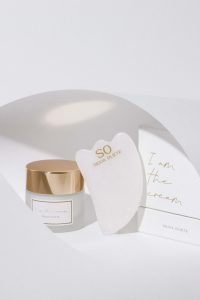 I am the cream contiene una fórmula, que es todo un regalo para la piel. Su composición a base de hydromanil, ácido hialurónico, niacinamida, miniporyl, argireline, pentavitin, karité, aceite de macadamia y glicerilo tricapil caprato, ayuda a restaurar la piel, devolviéndole su estado óptimo de salud y belleza, gracias también a la Gua Sha de jade blanco que incorpora para aumentar los beneficios de la rutina facial.