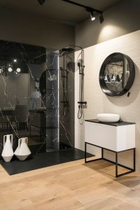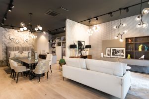 “La principal ventaja de Neolith es su versatilidad; en el showroom, el diseño escogido para la encimera y el fregadero integrado de la cocina, se prolonga hacia el revestimiento de la pared del salón, creando un open space muy impactante”. La personalización es uno de los valores de este nuevo estudio de interiorismo y decoración. Por ello, los diferentes grosores en los que se trabaja la piedra de Neolith, facilita también que esta pueda emplearse en el diseño de muebles, “creando piezas únicas e irrepetibles”.