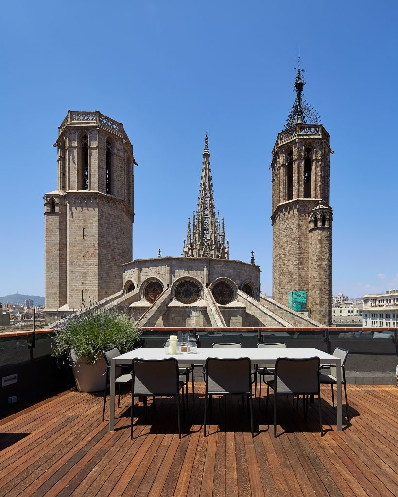 Abans de comprar-lo, el propietari d’aquest pis tenia clar una cosa: ”ha d’estar el més a prop possible de la Catedral”. Dit i fet, les imatges d’aquest reportatge parlen per elles mateixes, no hi ha cap altra terrassa a la ciutat amb la qual gairebé puguis tocar la façana del temple.
